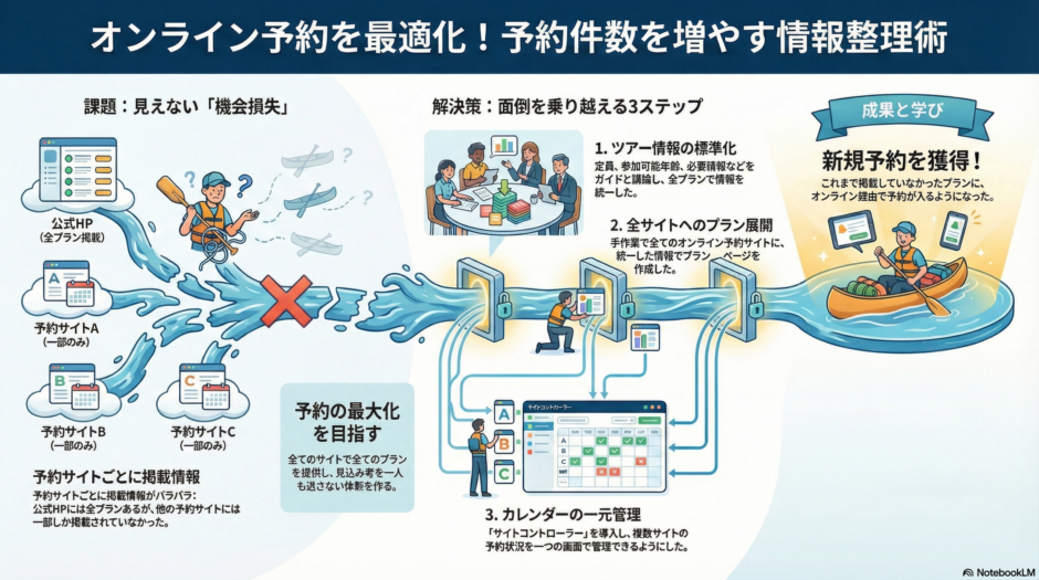 確かにそれぞれのプランのページを作るのはそこそこ労力がかかりますが、機会損失が発生している可能性があるぞ!と思い、すべてのオンライン予約サイトの情報を統一する方向で改善しました!