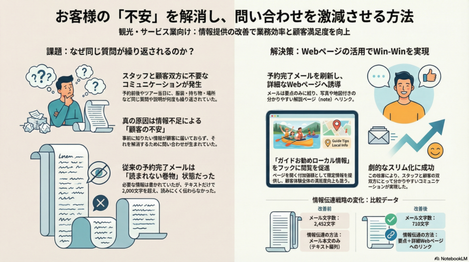 メールの文章のみ、でわかりやすく伝えるのに限界があると考えました。