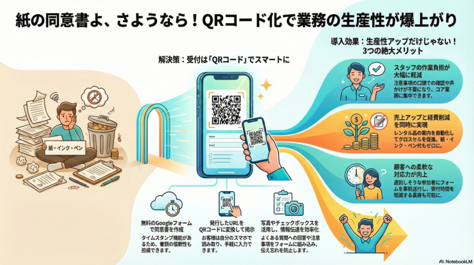 今回は、同意書を紙からQRコードで読み取るフォーム形式に切り替えた改善をご紹介!