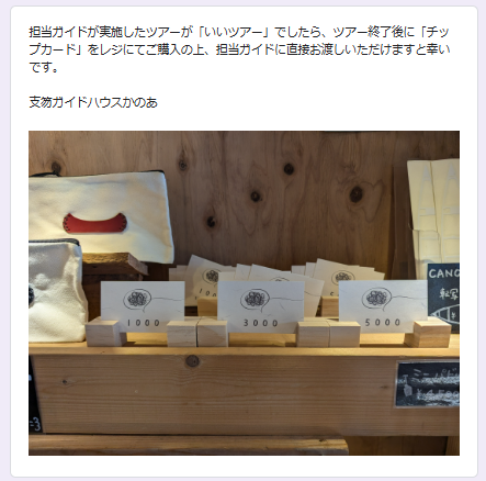 • ツアー終わりに物理的な「チップカード」を購入してもらう